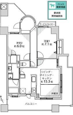 40階 専有面積 74.36㎡ 2LDK