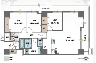 22階 専有面積 91.29㎡ 3LDK